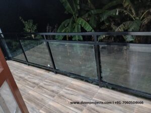 Toughen Glass Railing with MS Outer Frame Framed in 10mm glass and 1.5in square pipe, then painted with matte enamel. Post navigationPrevious post: Prefab Double Storey House for Chamoli ji at Neelkanth Nogaon, Pauri Leave a Reply Cancel replyYour email address will not be published. Required fields are marked *Comment * Name * Email * Website Save my name, email, and website in this browser for the next time I comment.